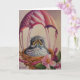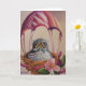 Tarjeta Arte Acuarela de Cría de Pájaro Paracaídas Rosa
