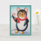 Tarjeta Arte Acuarela de Ratón Pingüino del Polo Norte Cap