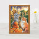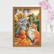 Tarjeta Arte Acuarela Zorro Rojo Mapache Cosecha de Otoño