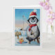 "Pingüino Pescando en el Hielo, Halfpint" Tarjeta de Felicitación de Arte en Acuarela del Artista Jean Weiner