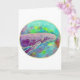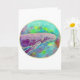 Esta tarjeta de felicitación colorida del diseño del batik ofrece un dibujo de la ballena jorobada de una cabeza, de un ojo y de aletas bajo el agua. Púrpura, trullo, marrón, marina de guerra y remolino amarillo junto para crear el arte submarino acuoso.