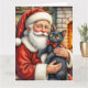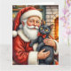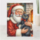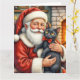 Tarjeta Arte de Navidad de Santa Claus sosteniendo un gato