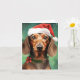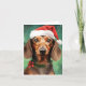 Diseño navideño colorido y alegre con un Dachshund que lleva un sombrero de Santa.