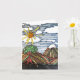 Tarjeta Arte lineal con montañas, árbol, sol, mano dibujad