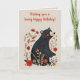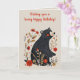 Esta hermosa tarjeta presenta una ilustración de un oso negro de arte popular con un mensaje editable encima. En el interior hay un mensaje editable. Puedes usarla como tarjeta de cumpleaños o como tarjeta para cualquier ocasión. Puedes cambiar el mensaje o borrarlo para crear una tarjeta en blanco. También puedes cambiar los colores del fondo en el interior y en la parte posterior. Crédito del arte: Lynda McDaniel-Smith, 2024.