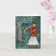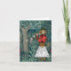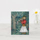 Un grabado en madera vintage convirtió este dibujo lineal de un leñador húngaro con traje tradicional y su hacha de confianza. Superpuesto en un tapiz Morris de un entorno forestal. Saludo navideño en idioma magiar.