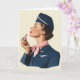 Tarjeta Asistente de vuelo vintage aplicando lápiz labial