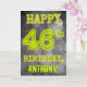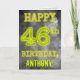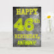 La parte delantera de este diseño de tarjetas de felicitación con aspecto espeluznante, con temática de cumpleaños y personalizable, muestra el mensaje "FELIZ CUMPLEAÑOS 46" con personajes con un aspecto de aura llamativo y espeluznante, en un misterioso patrón de fondo inspirado en la niebla gris. La parte frontal también incluye un nombre de destinatario de personalizable. El interior incluye un mensaje de bienvenida de cumpleaños de personalizable. Una tarjeta de felicitación de cumpleaños de personalizable como esta puede ser dada a alguien que celebra su 46º cumpleaños. [~Z0000364]
