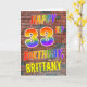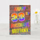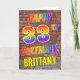 El frente de este diseño de tarjeta de felicitación de cumpleaños vibrante, emocionante y divertido presenta el mensaje "FELIZ CUMPLEAÑOS 33" con letras que tienen un patrón de gradiente multicolor como un arcoíris, y un nombre editable coloreado de amarillo, sobre un fondo con patrón de pared de ladrillos. El estilo está inspirado en el de grafitis o arte callejero dibujado en una pared. El interior presenta un mensaje de felicitación de cumpleaños personalizado. Una tarjeta de felicitación de cumpleaños divertida, feliz y personalizada como esta podría darse para celebrar el cumpleaños número treinta y tres de alguien.