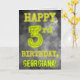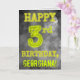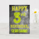 El frente de este diseño de tarjeta de felicitación de cumpleaños editable con aspecto espeluznante presenta el mensaje "FELIZ CUMPLEAÑOS 3" con personajes que tienen una apariencia de aura brillante espeluznante, sobre un patrón de fondo inspirado en una misteriosa niebla gris nubosa. El frente también incluye un nombre de destinatario personalizado. El interior presenta un mensaje de felicitación de cumpleaños personalizado. Una tarjeta de felicitación de cumpleaños editable como esta podría entregarse para conmemorar el tercer cumpleaños de alguien. [~Z0000364]
