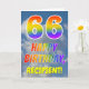 Esta divertida y colorida tarjeta de felicitación de 66 años presenta una representación de un cielo azul turbio, junto con un gran número "66" y el mensaje "FELIZ CUMPLEAÑOS", con un coloreado de patrones de gradiente inspirado en el espectro del arco iris, en la parte delantera. En la parte delantera también se incluye el nombre personalizado del destinatario de la tarjeta. El interior presenta un mensaje de bienvenida de cumpleaños personalizado, o tal vez podría ser borrado y dejado en blanco si se va a escribir un mensaje a mano. Una tarjeta de cumpleaños de personalizable como esta podría ser una manera divertida de enviar un mensaje en celebración de los sesenta y seis años de alguien. [~Z0000371]