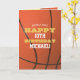Una tarjeta de cumpleaños para los aficionados al baloncesto o jugadores, esta carta tiene el aspecto de un baloncesto y puede ser personalizada con cualquier nombre, edad o adjetivo. En el interior hay una bola en la esquina que se dirige a través de la red.