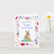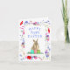 Adorable acuarela conejito de Pascua y huevos primavera floral de cornflower azul feliz Pascua graciosa tarjeta de saludos. Hermosa borda de flores silvestres de boho, incluyendo cachorros de flores de maíz y flores pradera de jardín con escritura tipográfica de escritura azul de flores de maíz, fácil de personalizar, para que puedas agregar tu nombre familiar y saludos. Pintura original de la artista Catherine Sweetman