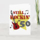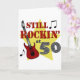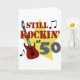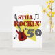Un diseño genial de rock 'n' roll que incluye una guitarra eléctrica y las palabras "Aún Rockeando a los 50". ¡Un regalo de cumpleaños genial!