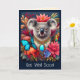 Imagen de un oso Koala con flores nativas australianas y mariposa azul. El texto dice "Ponte bien pronto". Enviándote abrazos y amor a medida que te recuperas. Personalizable tarjeta de saludo con la opción de cambiar texto e imágenes haciendo clic en Personalizar esta plantilla.