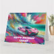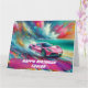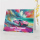Tarjeta Autodeportivo Rosa Vibrante en una Playa Tropical