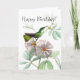 En esta tarjeta de felicitación por cumpleaños se encuentra el magnífico arte botánico vintage de un Hummingbird exótico y hábitat Flowers.