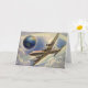 Tarjeta Avión de época volando por el mundo en nubes