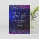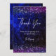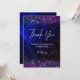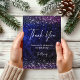 Tarjeta de agradecimiento con monograma de brillo falso azul púrpura chic. Tarjeta de agradecimiento descargable brillante, linda y chic. Perfecta para enviar a familiares o amigos durante la temporada de fiestas o cualquier otra ocasión como bodas, cumpleaños, baby showers, despedidas de soltera y fiestas de soltera. Para hacerla aún más especial, está adornada con hermoso brillo falso. Este diseño también se puede transferir a cualquier producto en Zazzle. Puedes personalizarlo con tu propio texto e información.