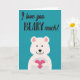 Tarjeta Azul con oso blanco corazón rosa palabra de juego