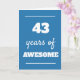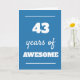 Tarjeta azul de cumpleaños de 43 años de increíble