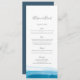 Tarjeta azul del menú o de programa de la boda de