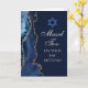 Elegante azul marino y adata dorada decoran la parte lateral de esta moderna tarjeta de felicitaciones para una fiesta de Bat Mitzvah. ¡Mazel Tov! Personalízala bajo la Estrella de David. Tarjeta de felicitación perfecta para una familia judía chic y elegante que celebra a una niña siendo llamada a la Torá.