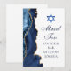 El elegante azul marino y el ónix dorado decoran el lateral de esta moderna tarjeta de felicitaciones de Bar Mitzvah. ¡Mazel Tov! Personalízala bajo la Estrella de David. Tarjeta de felicitación personalizada perfecta para una familia judía chic y elegante que celebra que un niño sea llamado a la Torá.