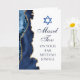 El elegante azul marino y el ágata dorada decoran la parte lateral de esta moderna tarjeta de felicitaciones de Bar Mitzvah. ¡Mazel Tov! Personalízala bajo la Estrella de David. Tarjeta de felicitación personalizada perfecta para una familia judía chic y elegante que celebra que un niño sea llamado a la Torá.