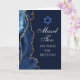 El elegante azul marino y oro ágata decora el lateral de esta moderna tarjeta de felicitaciones para una fiesta de Bat Mitzvah. ¡Mazel Tov! Personalízala bajo la Estrella de David. Tarjeta de felicitación perfecta para una familia judía chic y elegante que celebra a una niña siendo llamada a la Torá.