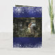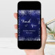 Un fondo de color azul marino irregular, decorado con brillo de plata falso. Dentro: 1ª de tus fotos, tamaño vertical. Tu nota de agradecimiento. Detrás: 2ª de tus fotos, tamaño apaisado.