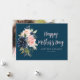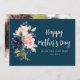 Un diseño de una tarjeta fotográfica floral de acuarela con flores azul marino y rosa. El texto y los colores se pueden personalizar.