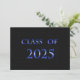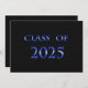 Clase de tarjeta 2025 con textura negra para el fondo y azul para el nombre. La parte posterior es una textura negra con letras azules para los anuncios de graduación.