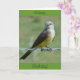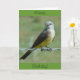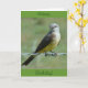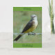 Tarjeta "subtitulada" de Western Kingbird. Estos pequeños pájaros bonitos con sus pechos amarillos son consumidores de grandes cantidades de insectos voladores. Utilizan las vallas de alambre de púas para percharse en áreas que carecen de pincel o árboles.