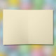 This cute Happy Easter card features a cute yellow baby chick perched atop a decorated blue and yellow Easter egg. Spring flowers and ferns surround the egg, with Happy Easter printed in a script font below. The background of the card on the front, inside, and back is a soft yellow.