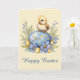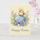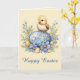 Tarjeta Baby Chick Happy Easter Egg Blue Yellow Flowers