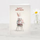 Tarjeta Baby Girl Bunny in High Chair With 1st BDay Cake
