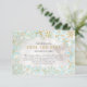 Los copos de nieve azules y dorados traen un libro para la tarjeta de bebé para una ducha de bebé para niños colocada sobre un elegante fondo de luz de bokeh. Voltea nuestra tarjeta para ver un copo de nieve coordinado de vuelta para un toque especial extra. Visita nuestra tienda para ver a nuestro bebé entero su colección de frío.
