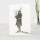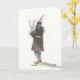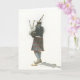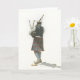 Tarjeta doblada, en blanco, que muestra una pintura acuarela de un gastrónomo en kilt completo caminando por una playa.Ilustración: Acuarela y grafito en lápiz. Copyright Dominic A.Blanca. Todos los derechos reservados.