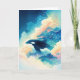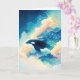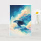 Esta imagen hipnotizante cuenta con una orca nadando con gracia a través de un mundo submarino de ensueño. Las vibrantes nubes de tonos coloridos se mezclan perfectamente con el océano azul profundo, creando un ambiente fantástico. La orca, con su suave piel blanca y negra, se desliza por el agua con una expresión serena, rodeada de estrellas delicadas y corrientes. La sutil presencia de los peces pequeños añade un sentido de tranquilidad y movimiento al lugar, haciendo de esto una representación encantadora de la vida marina dentro de un paisaje de ensueño celeste. Esta escena captura la armonía entre las criaturas del océano y la belleza del mundo que las rodea.