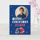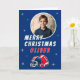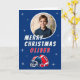 Tarjeta de Feliz Navidad con Balón de Fútbol y Casco de Dibujo Animado. Tarjeta de Navidad de fútbol divertida y moderna. Con una ilustración de dibujo animado en negrita de un balón de fútbol y un casco en colores azul y rojo. Agrega tu foto, nombre y mensaje dentro de la tarjeta.