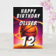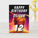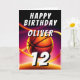 Baloncesto Ball Hoop it up Sports Happy Birthday Card. Este diseño moderno tiene el texto "Feliz cumpleaños", un nombre personalizado, edad y baloncesto en un fondo vivo y vibrante. La temática del baloncesto es perfecta para los cumpleaños de los aficionados al baloncesto. Personaliza con tu nombre, edad y deseos de cumpleaños dentro de la tarjeta.