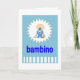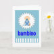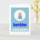¡Bambinoi! Tarjeta de saludo de niño recién nacido escrita en italiano. El color azul simboliza que el pequeño bambino es un niño.