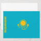 Este diseño presenta la bandera nacional de Kazajistán (oficialmente conocida como República de Kazajistán), que es un país transcontinental principalmente ubicado en Asia Central con una porción menor al oeste del Ural en Europa del Este. Kazajistán comparte fronteras con Rusia en el norte, China en el este, y Kirguistán, Uzbekistán y Turkmenistán en el sur; también linda con una gran parte del Mar Caspio en el suroeste. Kazajstán también está muy cerca de Mongolia, aunque los dos países no comparten frontera. Es el país sin litoral más grande del mundo. La capital de Kazajistán es Nur-Sultan, antes conocida como Astaná. La ciudad más grande de Kazajistán es Almaty. Otras ciudades importantes de Kazajstán son Shymkent, Karaganda, Aktobe, Taraz, Pavlodar, Oskemen, Semey y Atyrau.