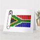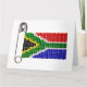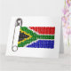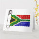 Un alfiler de seguridad con un tradicional broche con cuentas de zulú que representa la bandera sudafricana en un contexto aislado