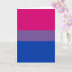 La bandera del orgullo bisexual fue diseñada en 1998 para darle a la comunidad bisexual su propio símbolo comparable a la bandera del orgullo gay de la comunidad LGBT más grande y aumentar la visibilidad de los bisexuales, tanto entre la sociedad como dentro de la comunidad LGBT. La franja rosa o rosa profunda en la parte superior de la bandera representa la posibilidad de la misma atracción de género; la franja azul real en la parte inferior de la bandera representa la posibilidad de una atracción de género diferente y las franjas se superponen en la quinta parte central de la bandera para formar un profundo matiz de lavanda o morado, lo que representa la posibilidad de atracción en cualquier parte del espectro de género.