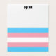 La Bandera del Orgullo Transgénero fue creada por la mujer trans estadounidense Monica Helms en 1999, y se mostró por primera vez en un desfile del orgullo en Phoenix, Arizona, Estados Unidos en 2000. La bandera representa la comunidad transgénero y consiste en cinco franjas horizontales: dos azul claro, dos rosa y una blanca en el centro. Las rayas de arriba y abajo son azul claro, el color tradicional para los niños. Las rayas que las rodean son rosas, el color tradicional para las niñas. La franja en el medio es blanca, para aquellos que están transitando o consideran que tienen un género neutral o indefinido.