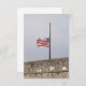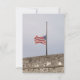 Este diseño presenta una fotografía original que muestra la bandera de los Estados Unidos de América volando a media asta. Volar una bandera a media asta es visto tradicionalmente como un símbolo de respeto, duelo o conmemoración. La bandera de los EE.UU. consta de trece franjas horizontales iguales de rojo alternando con blanco, con un rectángulo azul en el cantón con cincuenta estrellas pequeñas, blancas y de cinco puntas dispuestas en nueve filas horizontales de desvío; filas de seis estrellas (comenzando en la parte superior e inferior) alternan con filas de cinco estrellas. Las 50 estrellas de la bandera representan los 50 estados de los Estados Unidos de América, mientras que las 13 franjas representan las trece colonias británicas que declararon su independencia del Reino de Gran Bretaña, convirtiéndose en los primeros estados de los Estados Unidos. La bandera de los Estados Unidos de América es a veces conocida como la bandera, la gloria vieja o las estrellas y las rayas.
