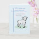 En una ocasión especial en la vida de su hijo, envíe sus sentidos deseos por él con esta tarjeta azul. Tiene una oveja bebé de azul, perfecta para darle mientras recibe bendiciones sobre su bautismo.