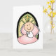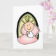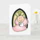 Una niña que usa un vestido rosa posa contra una ventana de la iglesia con una cruz en el diseño del bautismo objetos de niña que puedes personalizar en el lugar con un nombre u otro texto.